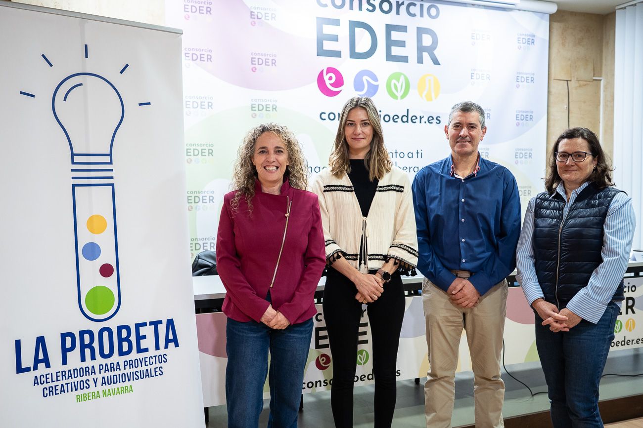 Consorcio EDER y el Clúster Audiovisual de Navarra (CLAVNA) presentaron este miércoles en Tudela la tercera edición de La probeta, un programa de formación y aceleración gratuito dirigido a proyectos creativos y audiovisuales impulsados en la Ribera de Navarra. La puesta de largo, realizada en la sede del Consorcio EDER en Tudela, estuvo encabezada por Eusebio Sáez, presidente de la Comisión Ejecutiva de Consorcio EDER; Sandra Calvo, gerente de Consorcio EDER; e Itziar Lacunza, directora de Proyecto en el Clúster Audiovisual de Navarra (CLAVNA), entidad encargada de la gestión del proyecto.